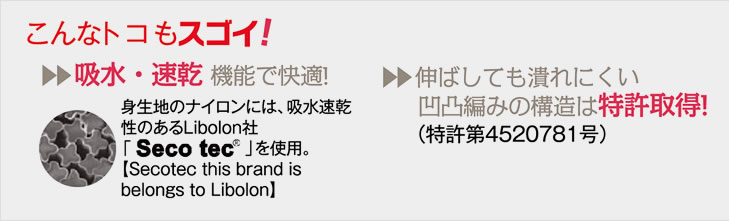 | 六角形凹凸編みが、吸いつくようにたるんだお肉をキャッチし、もみほぐしマッサージ。動くたびにつまむような感覚で刺激しながら引き締め、気になるたるみをシェイプ。 | |